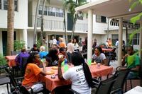 The Chapel patio (really a central courtyard) and the kitchen serve as the locus of most of our social life. We hold our weekly student suppers on the patio, weather permitting (which is almost always!), and this is where we also have our other smaller gatherings and celebrations.
